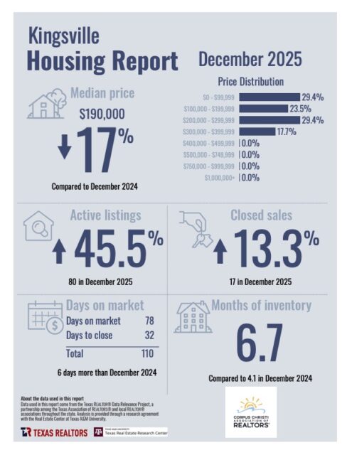 Category: Real EstateBy Char AtnipJanuary 19, 2026Leave a commentPost navigationPreviousPrevious post:Housing Report- Corpus Christi December 2025You Might Also Be Interested In…Housing Report- Corpus Christi December 2025January 18, 2026Owners of Newly Built Homes May Struggle To Break Even on a Quick ResaleDecember 24, 2025Housing Report- Port Aransas November 2025December 21, 2025Housing Report- Portland November 2025December 20, 2025Housing Report- Kingsville November 2025December 19, 2025Housing Report- Corpus Christi November 2025December 18, 2025