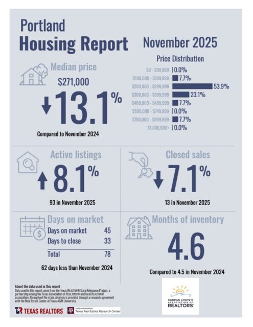 Category: Real EstateBy Char AtnipDecember 20, 2025Leave a commentPost navigationPreviousPrevious post:Housing Report- Kingsville November 2025You Might Also Be Interested In…Housing Report- Kingsville November 2025December 19, 2025Housing Report- Corpus Christi November 2025December 18, 20255 Cozy Log Cabins You Can Buy Now and Enjoy a Perfect Wintery Escape This Holiday SeasonDecember 14, 2025Exploring Housing Affordability: Where Mortgage Payments Are Cheaper Than Rent Across the U.S.December 12, 2025Divided Fed Votes To Cut Interest Rates Again Despite Mounting Objections From Rebel FactionDecember 11, 2025Housing Report- October 2025 KingsvilleNovember 21, 2025